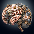 This unique wooden puzzle features a mechanical-style brainstem with stunning pink and silver tones, beautifully engraved with blooming flowers. The intricate design blends artistry and challenge, making it a truly captivating piece.