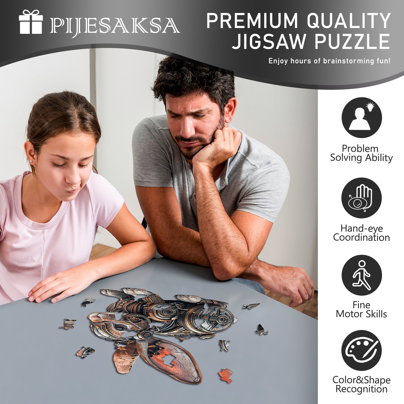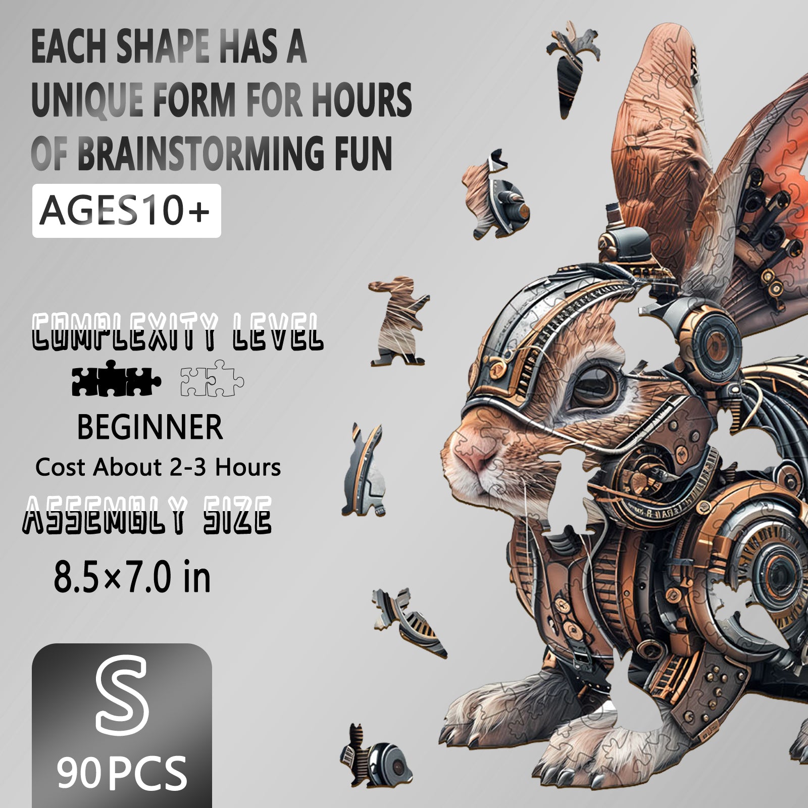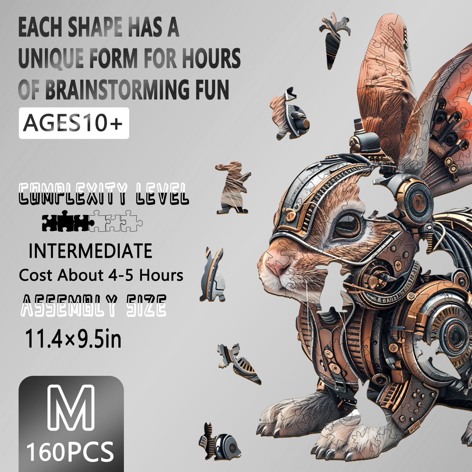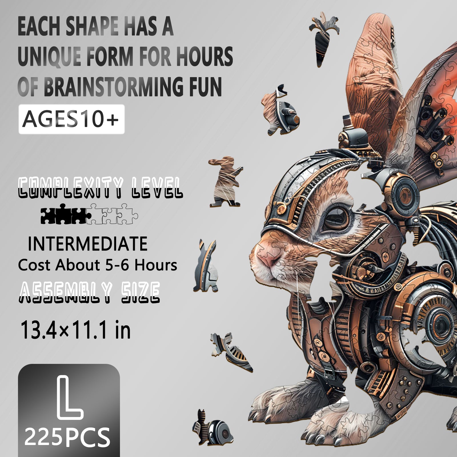 This unique wooden puzzle features a mechanical-style rabbit, designed with stunning metallic tones and intricate gears. The combination of delicate details and futuristic aesthetics makes this puzzle a captivating piece that merges art with engineering, perfect for collectors and puzzle enthusiasts alike.