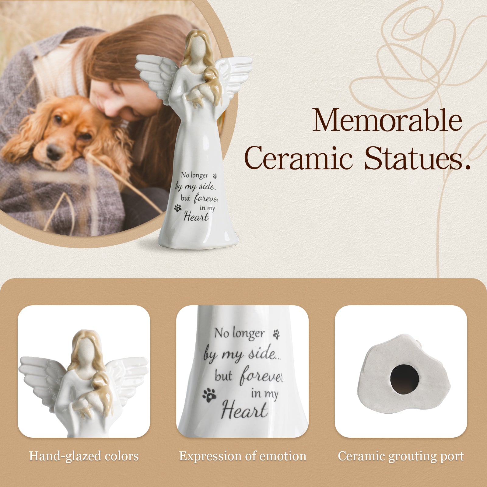 【Long-lasting in Memory of Dog Gift】The ceramic memorial dog gift is highly heat resistant, cold resistant, chemically stable, compared to the resin material, it will not aging and mold, you can collect it permanently, so it is perfect as a sympathy gift for the loss of dog, every time we see this figurine it reminds us of that special friendship.
