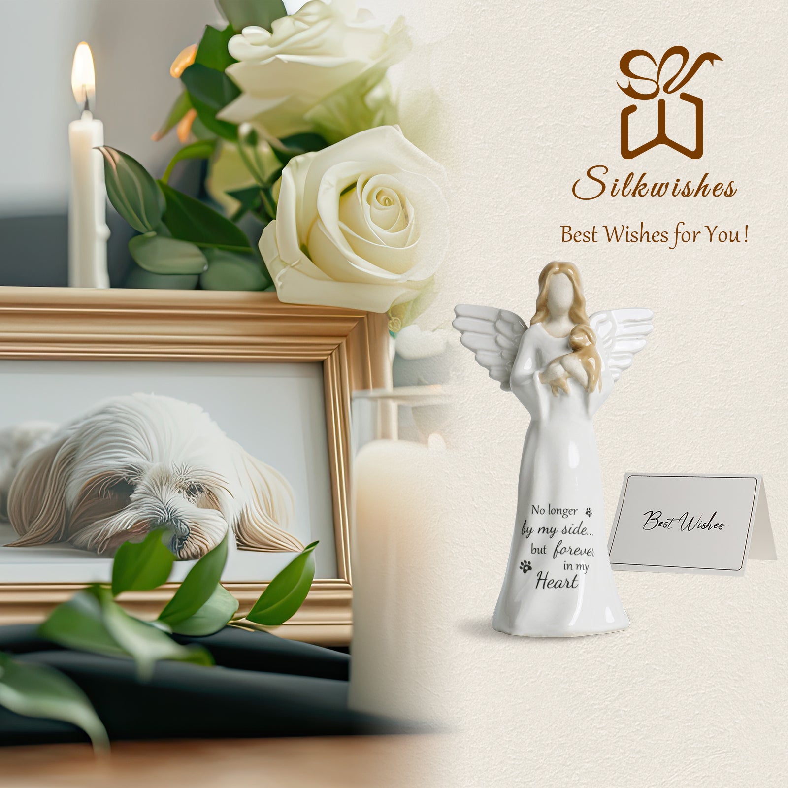 【Thoughtful Dog Death Sympathy Gift】It comes packaged in a suitable box, ready to be gifted. When you don't know how to comfort those friends who have lost their beloved pets, you can give them our angel dog figurine to show them your sympathy and concern, it can bring a comfort to friends and family.