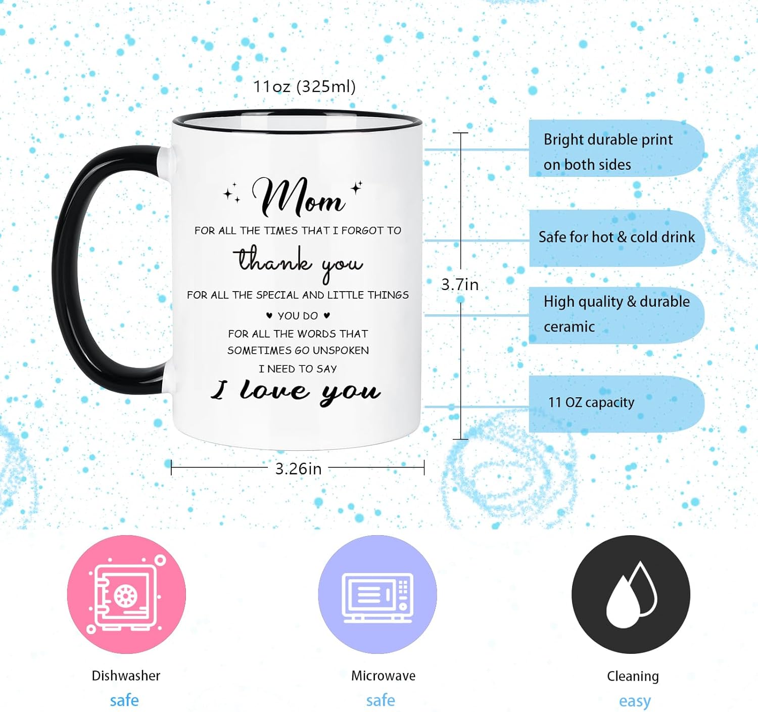 - 【Thank You Gifts for Mom】This simple and elegant coffee mug is specially designed for mom gifts, and the words on the mug can help us to say unspoken thanks to mom. When we feel the love from our mom, we also want to show our love and appreciation to her, but sometimes we may be shy or forget to say it. This simple mug gift is a medium to show love to your mother and let your mom feel your love every time she uses it, it will surely touch her deeply.