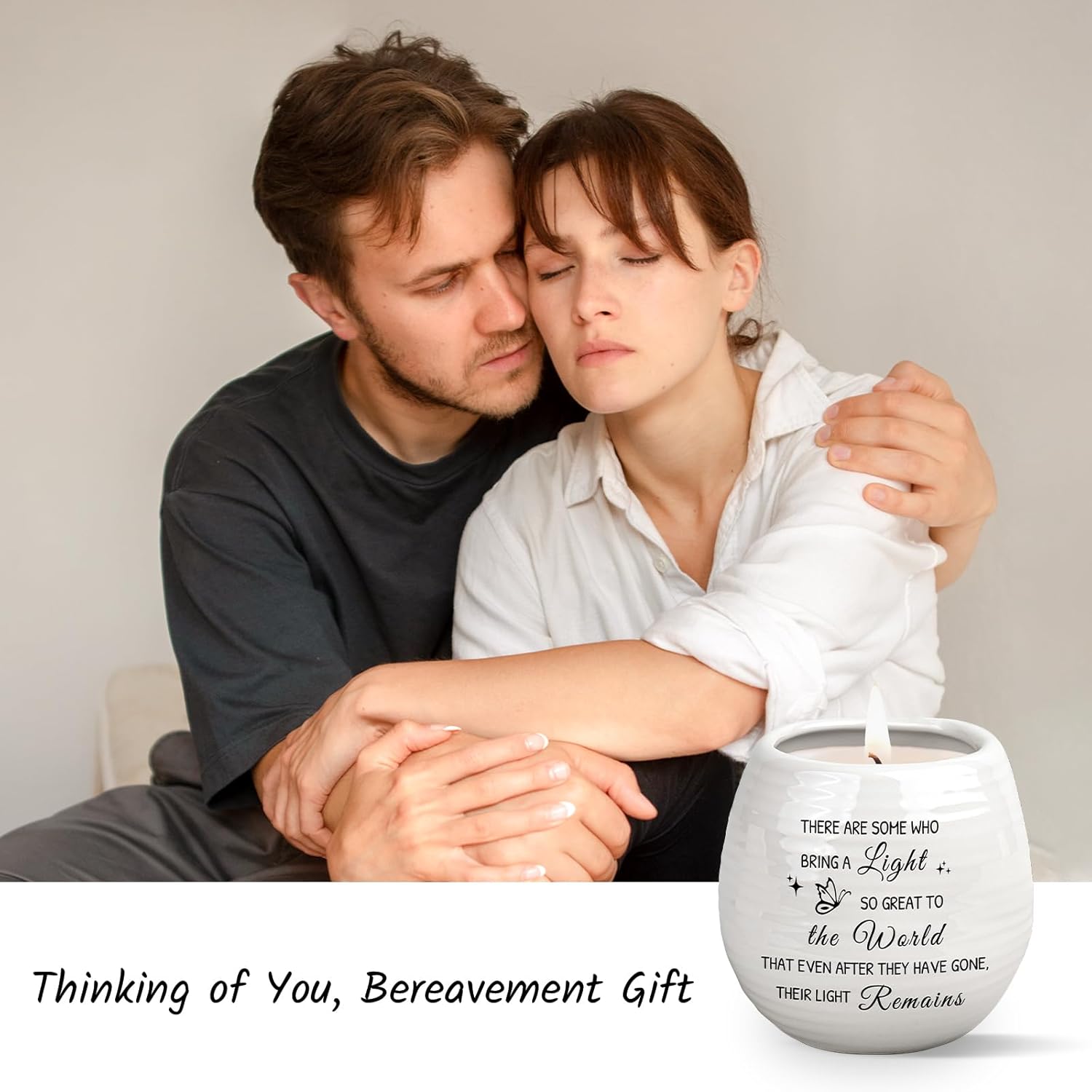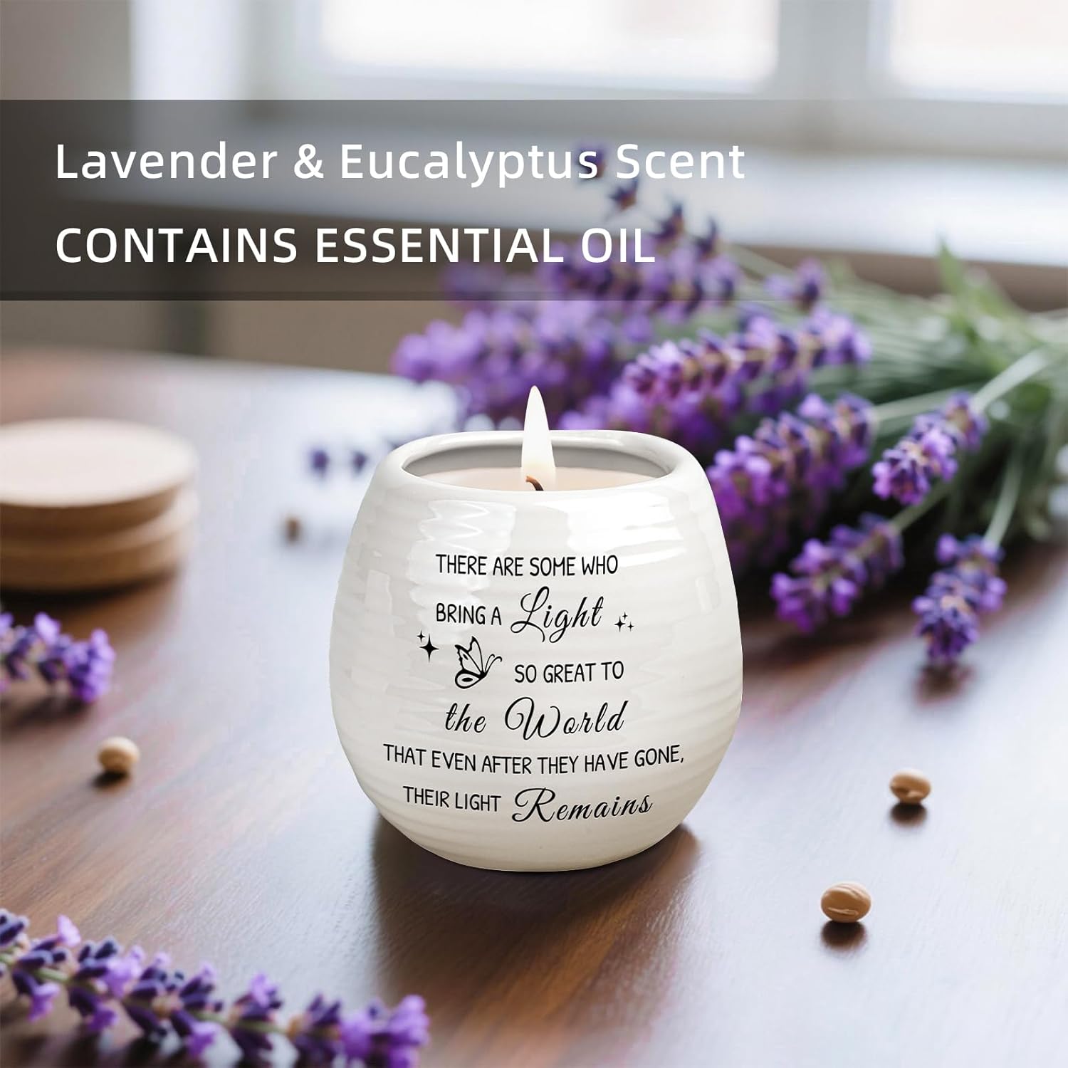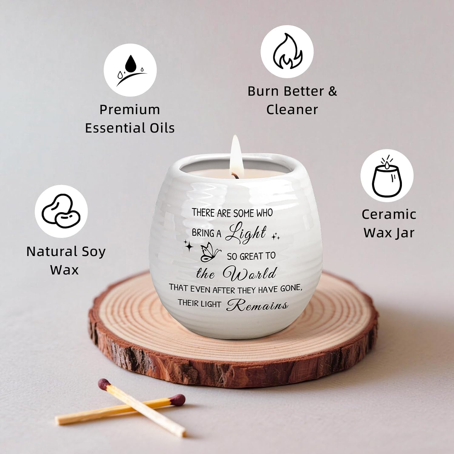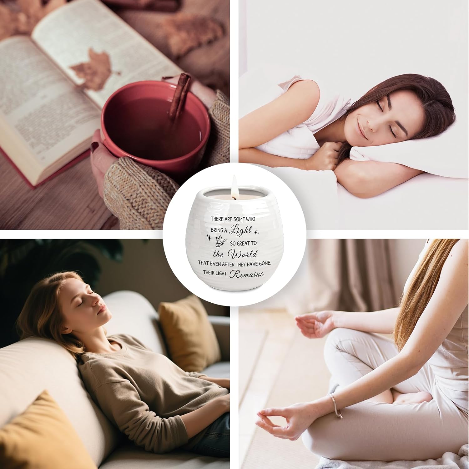 - 【Memorial Candle for A Loved One】This sympathy candle is used to honor the memory of a loved one who has passed away. On the front of the Ceramic Candle Jar, it reads “There are some who bring a light so great to the world. That even after they have gone, their light remain.” Just as the text on the front of the candle jar says, even though some people have gone, they will always remain in our hearts, warming us like candlelight.