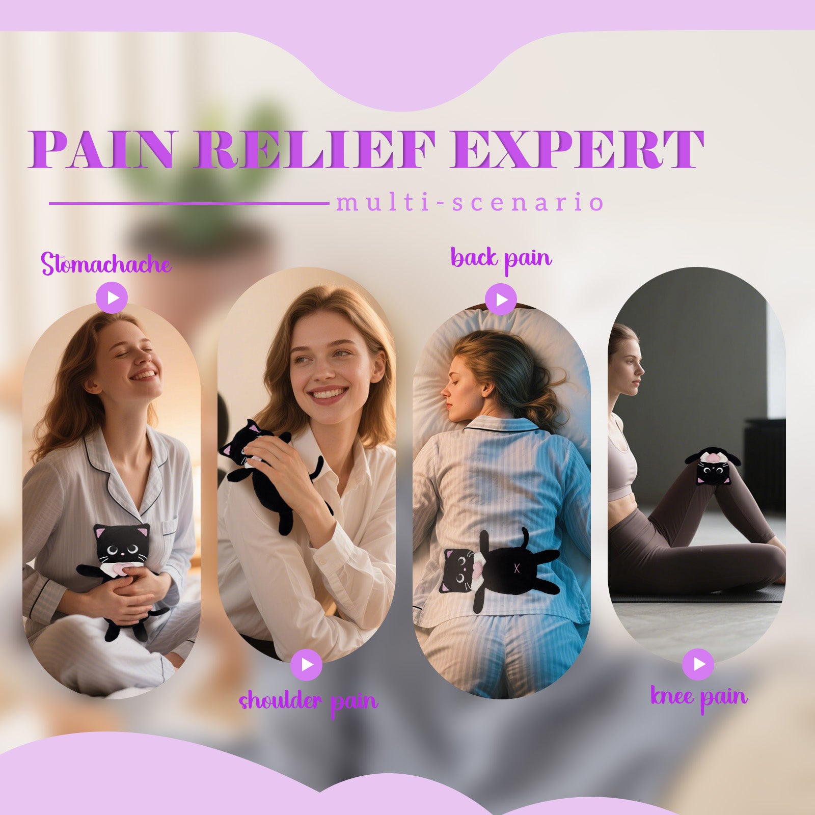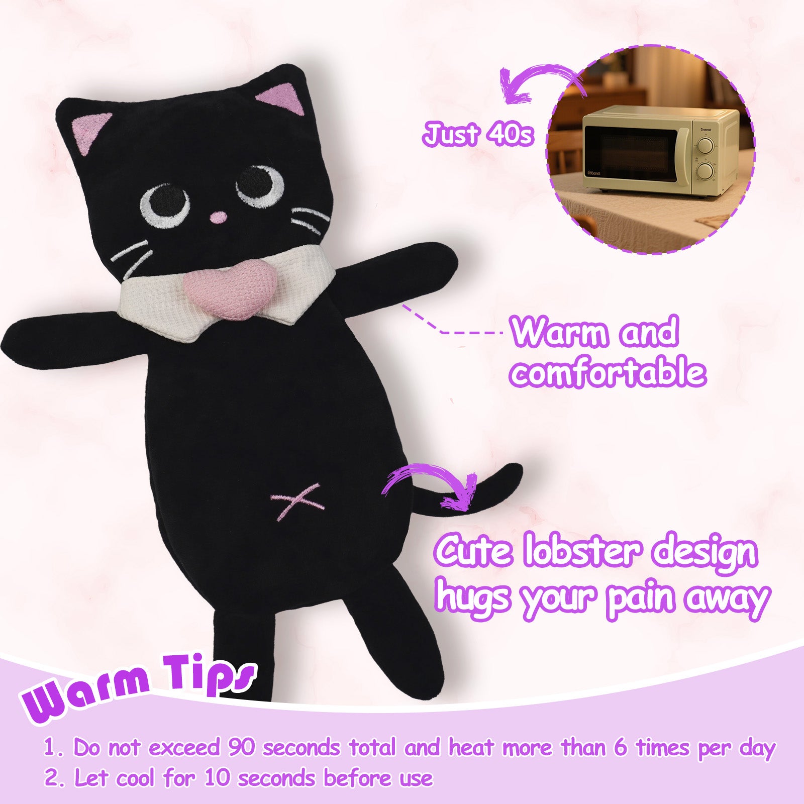 This cozy black cat plush provides soothing warmth during menstrual cramps. Designed with a flat, huggable shape for maximum comfort—just heat it in the microwave and snuggle up when you need extra care.2. 🎁 Funny & Cute Gift for Girls and Women