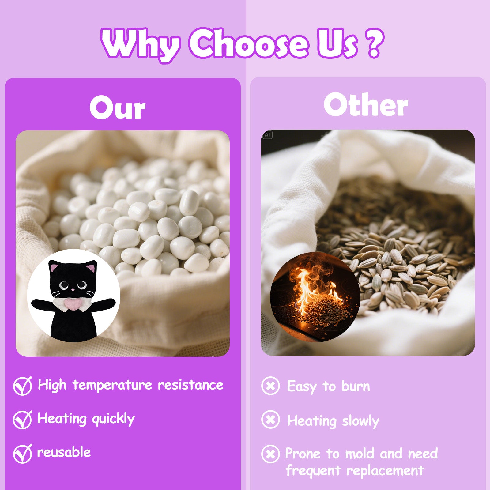 Made with soft cotton fabric and filled with unscented ceramic beads—safe for sensitive noses and daily use. A snuggly, natural comfort solution that feels as good as it looks.